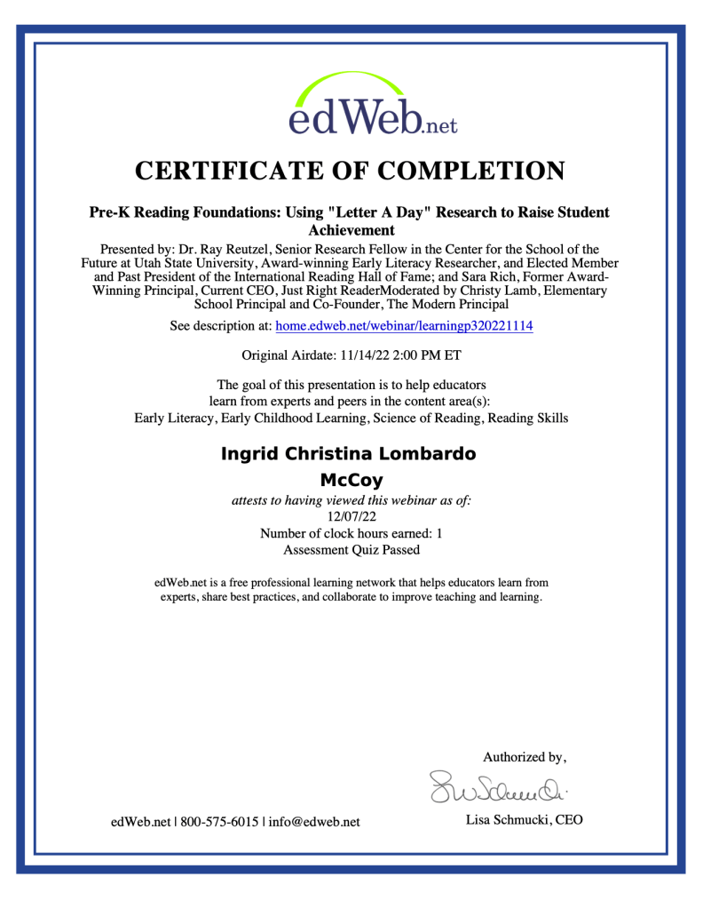 🎓 In addition to holding degrees in International Relations and German Studies, studying Mandarin Chinese at the graduate level, and gaining seven years of early literacy experience and training at the Washington DC Public Library, Ms. Christina engages in regular continuing education to best meet children’s early linguistic, literacy, and social-emotional needs.